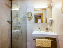 Apt 2 pièces 50 m2. Aménagement plaisant: séjour/salle à manger avec 1 divan-lit double, TV (satellite) et radio. Sortie sur le balcon. 1 chambre double. Cuisine ouverte (four, lave-vaisselle, 4 plaques vitrocéramiques, four micro-ondes, cafetière électrique). Douche, WC séparé. Balcon. A disposition: coffre-fort, sèche-cheveux. Internet (Connexion WIFI, en sus). Veuillez noter: maximum 2 animaux/ chiens autorisés. Détecteur de fumée.- Installations
