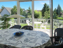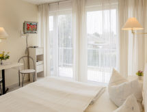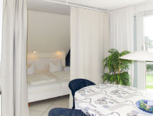 Petite résidence "Christina", de 3 étages. 5 appartements dans la résidence. À 500 m du centre de Trassenheide, à 5 km du centre de Zinnowitz, à 6 km du centre de Wolgast, dans un quartier résidentiel, à 1.5 km de la mer. En commun: terrain 800 m2, jardin entretenu avec pelouse. Terrasse, meubles de jardin. Infrastructures de la Maison: réduit pour bicyclettes. Place de parking sur le terrain. Supermarché 500 m, restaurant 600 m, gare ferroviaire "Trassenheide" 650 m, plage de sable 1.5 km, centre thermal "Bernstein-Therme" 5 km. Veuillez noter: le propriétaire habite dans la même maison.Interior