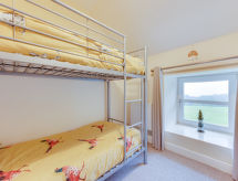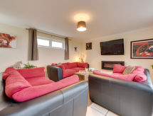 4 pièces cottage sur 2 niveaux. Spacieux et clair, aménagement confortable et de bon goût: séjour ouvert avec TV, écran plat et DVD. Sortie sur le jardin. Cuisine ouverte (4 plaques de cuisson, four, lave-vaisselle, four micro-ondes, congélateur) avec table pour les repas, TV (écran plat). À l'étage supérieur: 2 chambres doubles, chaque chambre avec: 1 lit double. 1 chambre avec 1 x 2 lits superposés. 2 bains/douches/WC. Chauffage. Belle vue sur la localité. A disposition: Internet (Connexion WIFI, gratuit). Veuillez noter: maison non-fumeur. 2 animaux/ chiens autorisés.- Caractéristiques de l'hébergement