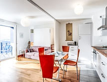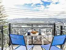 Apt 2 pièces 42 m2 au 2ème étage. Clair, aménagement agréable: entrée. Séjour/salle à manger avec 1 grand-lit armoire (1 x 140 cm), TV (écran plat). Sortie sur le balcon. 1 chambre avec 1 lit double (2 x 80 cm). Coin cuisine (four, lave-vaisselle, 3 plaques vitrocéramiques, grille-pain, bouilloire électrique, four micro-ondes, cafetière électrique). Bain/WC. Chauffage au gaz. Balcon 4 m2. Mobilier de balcon, chaises longues (2). Superbe vue sur la mer et la localité. A disposition: lave-linge, fer à repasser. Internet (Connexion WIFI, gratuit). Veuillez noter: détecteur de fumée.- Caractéristiques de l'hébergement