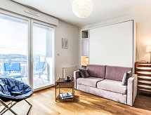 Trouville sur Mer: Résidence "Clos Savignac", de 3 étages, année de construction 2015. À 400 m du centre, sur une colline, à 900 m de la mer, à 900 m de la plage. Infrastructures de la résidence: ascenseur. Magasins 300 m, magasin d'alimentation, supermarché 550 m, restaurant 300 m, arrêt du bus 200 m, gare ferroviaire "Deauville-Trouville" 700 m, piscine couverte 950 m, centre thermal "Trouville sur Mer" 850 m. Terrain de golf 4.7 km, ecole de voile 1.7 km, tennis 900 m. Attractions à proximité: Hippodrome Deauville-La Touques 2.6 km, Honfleur 15 km, Mémorial de Caen 55 km, Plage du débarquement d'Arromanches 86 km. La remise des clés a lieu à l’agence Interhome de Deauville.Interior