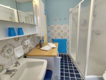 "Corte della Carla (LIE200)", apt 2 pièces 50 m2, au rez-de-chaussée. Aménagement fonctionnel: séjour/chambre à coucher avec 1 divan-lit double et cheminée (uniquement à titre de décoration), table pour les repas, TV (satellite) et air-conditionné. 1 chambre avec 1 lit double. Cuisine (four, 4 feux, grille-pain, four micro-ondes, congélateur, cafetière électrique) avec table pour les repas. Sortie sur le balcon. Douche/WC. Chauffage au gaz. Petit balcon. Mobilier de balcon, chaises longues (3). A disposition: lave-linge, coffre-fort, chaise haute pour enfant, lit bébé jusqu'à 2 ans. Internet (Connexion WIFI, gratuit). Veuillez noter: logement non-fumeur. Maximum 2 animaux/ chiens autorisés. Entrée privée. CIR: 097043-CNI-00042- Installations