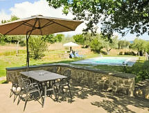 Maison de campagne individuelle "Cortona Sunshine", 490 m au dessus du niveau de la mer. À 2 km du centre de Cortona, situation ensoleillée, dans la verdure. A usage privé: jardin 500 m2 (clôturé), piscine (9 x 4 m, profondeur 100 - 200 cm, disponibilité saisonnière: 01.Mai. - 15.Oct.). Pergola, meubles de jardin, four / barbecue en dur, espace barbecue. Infrastructures de la Maison: accès internet. Accès en voiture (200 m chemin non goudronné). Place de parking sur le terrain. Magasin d'alimentation 2 km, supermarché 5 km, restaurant 2 km, gare ferroviaire "Camucia-Cortona" 5 km, lac Trasimeno 10 km. Attractions à proximité: Arezzo 30 km, Siena 80 km, Perugia 80 km, Firenze 120 km.Interior