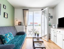 Apt 2 pièces 36 m2 au 1er étage. Aménagement confortable: séjour/salle à manger avec 1 divan-lit double (1 x 140 cm, longueur 190 cm), TV (écran plat). Sortie sur le balcon. 1 chambre avec 1 grand-lit (1 x 140 cm, longueur 190 cm). Sortie sur le balcon. Coin cuisine (4 plaques de cuisson, lave-vaisselle, congélateur, cafetière électrique, combiné micro-ondes). Douche/WC. Chauffage au gaz. Balcon 7 m2. Mobilier de balcon. A disposition: Internet (Connexion WIFI, en sus). Place de parking No 1. Veuillez noter: détecteur de fumée. Annonce d'un particulier (art 155, IV du CGI).- Installations
