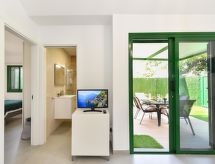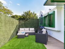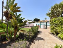 Beau bungalow, simple "Cozy Bungalow Playa Flor II Maspalomas". Infrastructures de la maison: air-conditionné, solarium, lave-linge (à usage privé). Accès et parking: possible dans la rue. Accès en voiture pendant toute l'année. Position: au centre de Maspalomas, en position tranquille, animée, ensoleillée. Vue de la maison sur le jardin. Alentours de la maison: jardin (à usage privé), piscine (en commun).Interior