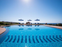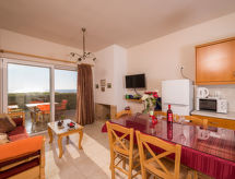 "Dias", maison jumelée 4 pièces 90 m2. Aménagement agréable et de bon goût: séjour/salle à manger avec 1 divan-lit double, cheminée, TV (satellite), lecteur CD et DVD. Sortie sur le jardin, sur la piscine. 1 chambre avec 2 lits. Sortie sur le balcon. Cuisine (4 plaques de cuisson, four, four micro-ondes, congélateur) avec table pour les repas. WC séparé. À l'étage supérieur: 2 chambres, chaque chambre avec: 2 lits. Bain/WC. Balcon 30 m2, terrasse 35 m2, jardinet 30 m2. Meubles de terrasse, barbecue (portable), chaises longues (6). Belle vue sur la mer et les montagnes. A disposition: lave-linge, coffre-fort, fer à repasser, sèche-cheveux. Internet (Connexion WIFI, gratuit). Adapté(e) aux familles. 1 animal/ chien autorisé. Lit supplémentaire: divan-lit pour 2 personnes. 1042K123K2864001- Installations