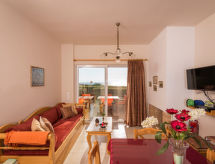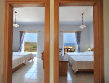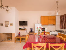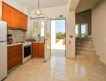 Stavros à 16 km de Chania: Maison à 2 apts accueillante pour les enfants, confortable "Cretan View", année de construction 2010. En bordure de la localité, situation tranquille, ensoleillée, à 50 m de la mer, à 1 km de la plage, dans une rue. En commun: terrain 4'000 m2 (clôturé), jardin, piscine (100 m2, disponibilité saisonnière: 01.Jan. - 31.Dec.) avec eau de mer. Bassin pour les enfants, meubles de jardin, espace de jeux pour les enfants. Infrastructures de la Maison: Connexion WIFI, air-conditionné. Change de linge 1 fois par semaine. Changementde linge de toilette 1 fois par semaine. Place de parking près de la maison. Magasin d'alimentation, restaurant, bar, boulangerie, café 500 m, plage de sable 1 km. Groupes de jeunes sur demande seulement. Veuillez noter: la propriété référencée GR6480.200.2 est située sur le même terrain.Interior