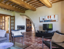 Belle villa luxueuse, individuelle "Cuor di Leone", 350 m au dessus du niveau de la mer. À 7 km du centre de Tuoro, situation ensoleillée, surélevée sur une colline, quartier résidentiel, à 7 km du lac. A usage privé: jardin 3'000 m2 (clôturé), piscine (14 x 5 m, profondeur 130 - 250 cm, disponibilité saisonnière: 01.Mai. - 30.Sep.). Douche extérieure, bain à remous , meubles de jardin, barbecue. Accès en voiture (1 km chemin non goudronné). Place de parking près de la maison. Magasin d'alimentation 7 km, supermarché 7 km, restaurant 1 km. Attractions à proximité: Passignano Sul Trasimeno 12 km, Cortona 20 km, Castiglion Del Lago 23 km, Montepulciano 35 km, Perugia 40 km. Veuillez noter: voiture recommandée. Groupes de jeunes sur demande seulement.Interior