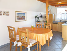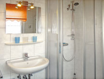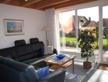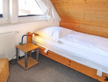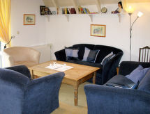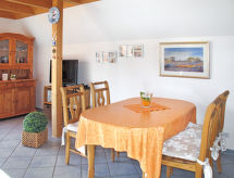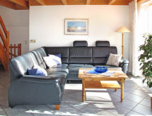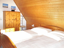 "Strandpirat", maison 3 pièces 62 m2 sur 2 niveaux. Aménagement plaisant: séjour/salle à manger avec table pour les repas et TV (satellite). Sortie sur la terrasse. Cuisine ouverte (4 plaques de cuisson, four, grille-pain, bouilloire électrique, cafetière électrique). Douche/WC. À l'étage supérieur: 1 chambre avec 1 lit double. 1 chambre avec 2 lits. Chauffage au gaz. Pelouse. Meubles de terrasse. A disposition: chaise haute pour enfant, lit bébé. Veuillez noter: maximum 1 animal/ chien autorisé. Détecteur de fumée, extincteur.- Installations