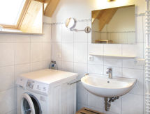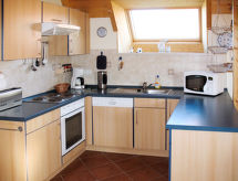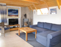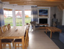 "Friesenhus", maison 3 pièces 68 m2 sur 2 niveaux. Aménagement plaisant: grand séjour/salle à manger avec 2 lits pliants et TV (satellite). Sortie sur la terrasse. Cuisine ouverte (4 plaques de cuisson, four, grille-pain, bouilloire électrique, cafetière électrique). Douche/WC. À l'étage supérieur: 1 chambre avec 1 lit double. 1 chambre avec 2 lits. Chauffage au gaz. Terrasse, pelouse. Meubles de terrasse. A disposition: chaise haute pour enfant, lit bébé. Veuillez noter: maximum 1 animal/ chien autorisé. Détecteur de fumée, extincteur. Un canapé convertible deux places peut être utilisé à la place des deux lits pliants.- Installations