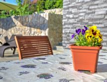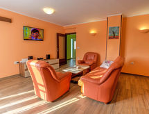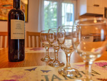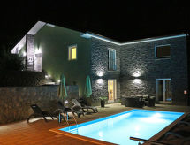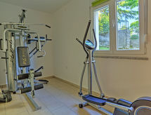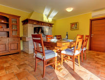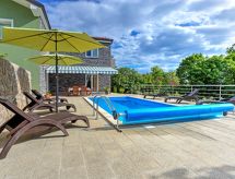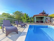 Kastav à 7 km de Opatija: Maison individuelle "Dante", de 2 étages. Dans le hameau de Marčelji, à 6 km du centre de Kastav, à 10 km du centre de Rijeka, à 12 km du centre d'Opatija, situation tranquille, ensoleillée, à 11 km de la mer, dans la verdure. A usage privé: terrain 1'600 m2 (clôturé), piscine rectangulaire, chauffée (7 x 3 m, 24 m2, profondeur 140 cm, disponibilité saisonnière: 18.Avr. - 10.Oct.) avec systeme d'électolyseur au sel. Douche extérieure, terrasse (100 m2), meubles de jardin, barbecue. Infrastructures de la Maison: accès internet, sauna, lave-linge. Place de parking (pour 4 voitures) près de la maison sur le terrain, garage individuel. Magasins 700 m, restaurant 1.7 km, plage de graviers 11 km.Interior