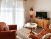 Immeuble "Dehne". Au centre de Norddeich, à 500 m de la mer, à 700 m de la plage. En commun: beau jardin. Barbecue. Infrastructures de la Maison: chauffage central. Place de parking près de la maison. Supermarché 550 m, restaurant 50 m, boulangerie, café 150 m, arrêt du bus 50 m, gare ferroviaire, ferry, plage de sable 700 m, piscine 14 km, piscine couverte 650 m. Terrain de golf (9 trous) 8 km. Jeux pour enfants 650 m.Interior