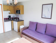 "Domaine des Cazelles (CJC420)", maison mitoyenne 2 pièces 32 m2 sur 2 niveaux. Aménagement fonctionnel: séjour/chambre à coucher avec 1 lit gigogne (2 pers. 2 x 90 cm), table pour les repas et TV. Sortie sur la terrasse. Coin cuisine (4 plaques de cuisson, lave-vaisselle, grille-pain, bouilloire électrique, cafetière électrique, combiné micro-ondes). À l'étage supérieur: 1 chambre avec 1 grand-lit (longueur 190 cm). Salle de bains, WC séparé. Chauffage électrique. Terrasse. Meubles de terrasse. A disposition: Internet (Connexion WIFI, en sus). Maximum 2 animaux/ chiens autorisés. Possibilité PMR. Nous consulter. Espace wifi fibre optique, illimité et sécurisé à la réception de la résidence.- Installations