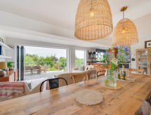 Maison 5 pièces sur 2 niveaux. Spacieux et clair, aménagement confortable et de bon goût: séjour ouvert avec TV, écran plat et DVD. 1 chambre avec 2 lits. Cuisine ouverte (4 plaques de cuisson, four, four micro-ondes, congélateur) avec table pour les repas. Douche/WC. À l'étage supérieur: 1 chambre double avec 1 lit double et douche/WC. 1 chambre double avec 1 lit double et TV (écran plat). Sortie sur la terrasse. 1 chambre avec 2 lits. Bain/douche/WC. Chauffage. Meubles de terrasse. Belle vue sur la mer. A disposition: lave-linge, sèche-linge. Internet (Connexion WIFI, gratuit). Veuillez noter: maison non-fumeur.- Installations