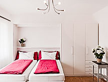 "Double Room" studio 35 m2 au 3ème étage, situation sud. Aménagement fonctionnel: séjour/salle à manger avec 2 lits armoires, TV (satellite) et radio. Cuisine (4 plaques de cuisson, four, lave-vaisselle, cafetière électrique, Capsules pour machine à café (Nespresso) (NON INCLUSES)). Bain/WC. Balcon. Meubles de terrasse. A disposition: Internet (Connexion WIFI, gratuit). Veuillez noter: logement non-fumeur. Maximum 1 animal/ chien autorisé.- Installations