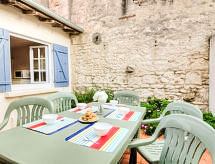 Maison mitoyenne "Doumer". Au centre de Royan, à 500 m de la mer, à 500 m de la plage. A usage privé: cour, parking public possible dans la rue. Magasins, supermarché, restaurant, boulangerie, café 300 m, gare ferroviaire "Royan" 1.2 km, plage de sable "La Grande Conche - Royan" 500 m, parc "Luna Park (Juillet-Août)" 20 km, piscine couverte 1 km, centre thermal "Thalassothérapie Thalazur Royan" 1.8 km. Port plaisance 1.4 km, terrain de golf 9 km, ecole de voile 1 km, tennis 1.8 km, centre équestre 9 km, piste cyclable 500 m. Attractions à proximité: Zoo de La Palmyre 16 km, Hippodrome - La Palmyre 17 km, Centre aquatique Iléo - Ile d'Oléron 47 km, Fort Boyard - Fouras 55 km, Aéroport La Rochelle - Ile de Ré 78 km, Aéroport Bordeaux - Merignac 130 km. La remise des clés a lieu à l’agence Interhome de Vaux sur Mer, 3 km.Interior