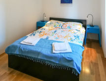 Maison 3 pièces 100 m2 sur 2 niveaux, situation sud. Séjour 33 m2 avec 1 divan-lit double (140 cm, longueur 200 cm), TV (satellite) (écran plat), air-conditionné. Sortie sur la terrasse. Salle à manger. Sortie sur la terrasse. Cuisine ouverte (four, lave-vaisselle, 4 plaques vitrocéramiques, four micro-ondes, congélateur, cafetière électrique). Douche/bidet/WC. À l'étage supérieur: 1 chambre 16 m2 avec 1 lit double (2 x 90 cm, longueur 200 cm), douche/bidet/WC et air-conditionné. 1 petite chambre avec 1 grand-lit (140 cm, longueur 200 cm), air-conditionné. Chauffage par le sol, chauffage à air chaud (en sus). A disposition: lit bébé. Internet (Connexion WIFI, gratuit).- Installations