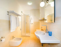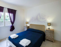 "Ea Bianca", apt 3 pièces 65 à 70 m2. Aménagement moderne et de bon goût: séjour/chambre à coucher avec 1 divan-lit double, table pour les repas et TV. 1 chambre avec 1 lit double. 1 chambre avec 2 couchages. Coin cuisine (four, 4 feux). Douche/WC. Chauffage électrique, air-conditionné. Balcon ou terrasse. Mobilier de balcon. A disposition: lave-linge, chaise haute pour enfant, lit bébé (en sus). Maximum 1 animal/ chien de petite taille autorisé.- Installations