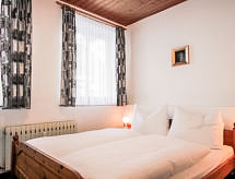 Apt 3 pièces 65 m2, au rez-de-chaussée. Aménagement confortable et plaisant: entrée. Grand séjour/salle à manger avec 1 divan-lit double, coin repas et TV (satellite) (écran plat). Sortie sur la terrasse. 1 chambre avec 1 x 2 lits superposés. 1 chambre double. Cuisine ouverte (four, 4 plaques vitrocéramiques, four micro-ondes). Douche/WC. Terrasse. Vue sur les montagnes et les alentours. Place de parking (1 Voiture). Veuillez noter: adapté(e) aux familles. Logement non-fumeur. Maximum 1 animal/ chien autorisé. 50425-000005-2020- Installations
