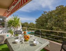 Apt 2 pièces 44 m2 au 3ème étage. Aménagement agréable: séjour/salle à manger avec 1 divan-lit double (140 cm, longueur 190 cm), TV (écran plat). Sortie sur la terrasse. 1 chambre avec 1 lit double (2 x 90 cm, longueur 190 cm), TV (écran plat). Coin cuisine (four, lave-vaisselle, 4 plaques vitrocéramiques, grille-pain, bouilloire électrique, four micro-ondes, cafetière électrique). Douche, WC séparé. Air-conditionné. Terrasse 12 m2, couverte, situation sud. Meubles de terrasse. A disposition: lave-linge. Internet (Connexion WIFI, gratuit). Place de parking No 28 (couvert). Veuillez noter: logement non-fumeur. 1 animal/ chien de petite taille autorisé. Détecteur de fumée. Annonce d'un particulier (art 155, IV du CGI). 83119005615MX- Caractéristiques de l'hébergement