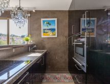 Saint Tropez: Résidence "Eden", de 3 étages. À 500 m du centre de Saint Tropez, à 300 m de la mer, à 700 m de la plage. En commun: jardin, piscine (22 x 12 m, profondeur 100 - 240 cm, disponibilité saisonnière: 01.Mai. - 30.Sep.). Infrastructures de la Maison: ascenseur. Place de parking ou garage pour voiture de petite - moyenne dimension. Magasins, magasin d'alimentation 400 m, supermarché 5 km, restaurant, boulangerie 400 m, plage de sable "La Bouillabaisse" 700 m. Port plaisance 800 m, terrain de golf 11 km, ecole de voile 2.1 km, tennis 1.6 km, golf miniature 5 km. Attractions à proximité: Port de Saint Tropez 800 m, Plages de Pampelonne 6 km, Port Grimaud 6 km, Cannes 84 km, Nice 110 km, Monaco 134 km. Les lacs connus sont facilement accessibles: Lac de Sainte Croix 92 km. Région de randonnées: Massif de l'Esterel 50 km. Veuillez noter: voiture recommandée.Interior