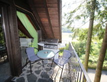 Maison à 3 apts "Eifelnatur (Haus 1)", environnée par les arbres et champs. En bordure de la localité, à 300 m du centre, situation tranquille, surélevée sur un versant, à 10 m de la forêt, dans une impasse, dans la verdure. En commun: terrain 1'000 m2, jardin entretenu, 450 m2 avec pelouse 300 m2, fleurs, étang. Ping-pong, espace de jeux pour les enfants (toboggan, balançoire, bac à sable). Infrastructures de la Maison: sauna (en sus). Billard, baby foot, réduit pour bicyclettes, chauffage central, lave-linge (en commun, en sus). Change de linge 1 fois par semaine. Changementde linge de toilette 1 fois par semaine. Service boulangerie et service boissons possible sur demande (en sus). Sentier en escalier (25 marches) jusqu'à la maison. Place de parking (nombre de places limité) sur le terrain. Magasin d'alimentation 5.3 km, supermarché 5.3 km, centre commercial 5 km, restaurant 150 m, bar 3.3 km, boulangerie 5.3 km, café 3.3 km, location de bicyclettes 10 km, arrêt de bus "Daun" 10 km, gare ferroviaire "Gerolstein" 23 km, piscine 7.6 km, piscine couverte 10 km, baignade en lac 7.6 km. Terrain de golf (18 trous) 15 km, tennis 3.5 km, golf miniature 7.8 km, centre équestre 10 km, chemins de randonnées pédestres depuis la maison 50 m. Attractions à proximité: Vulkanmaare, Vulkanmuseum, Kreuzweg, Strohner Märchen, Wildpark Daun, Adler- und Wolfspark Kasselburg. Les lacs connus sont facilement accessibles: Pulvermaar 1.5 km. Veuillez noter: voiture recommandée. Le propriétaire n'accepte pas les groupes de jeunes. Déchargement et chargement des bagages à la location de vacances. Environnement très sensible au bruit. Silence et bonne tenue exigés.Interior