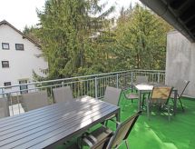 Maison à 3 apts "Eifelnatur (Haus 2)", environnée par les arbres et champs. En bordure de la localité, à 300 m du centre, situation tranquille, surélevée sur un versant, à 10 m de la forêt, dans une impasse, dans la verdure. En commun: terrain 1'350 m2, jardin entretenu, 450 m2 avec pelouse 300 m2, fleurs. Ping-pong, espace de jeux pour les enfants (toboggan, balançoire, bac à sable). Infrastructures de la Maison: sauna (en sus). Billard, baby foot, réduit pour bicyclettes, chauffage central, lave-linge (en commun). Change de linge 1 fois par semaine. Changementde linge de toilette 1 fois par semaine. Service boulangerie et service boissons possible sur demande (en sus). Sentier en escalier (25 marches) jusqu'à la maison. Place de parking (nombre de places limité) sur le terrain. Magasin d'alimentation 5.3 km, supermarché 5.3 km, centre commercial 5 km, restaurant 150 m, bar 3.3 km, boulangerie 5.3 km, café 3.3 km, location de bicyclettes 10 km, arrêt de bus "Daun" 10 km, gare ferroviaire "Gerolstein" 23 km, piscine 7.6 km, piscine couverte 10 km, baignade en lac 7.6 km. Terrain de golf (18 trous) 15 km, tennis 3.5 km, golf miniature 7.8 km, centre équestre 10 km, chemins de randonnées pédestres depuis la maison 50 m. Attractions à proximité: Vulkanmaare, Vulkanmuseum, Kreuzweg, Strohner Märchen, Wildpark Daun, Adler- und Wolfspark Kasselburg. Les lacs connus sont facilement accessibles: Pulvermaar 1.5 km. Veuillez noter: voiture recommandée. Le propriétaire n'accepte pas les groupes de jeunes. Déchargement et chargement des bagages à la location de vacances. Environnement très sensible au bruit. Silence et bonne tenue exigés. Un bar self-service est situé dans le bâtiment voisin. La salle de loisirs / sauna se trouve dans la maison et est également disponible pour les clients des deux autres maisons.Interior