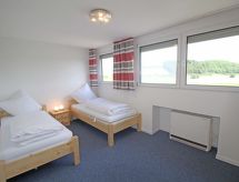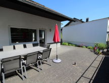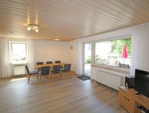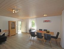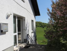 Maison jumelée "Eifelnatur (Haus 3)", environnée par les arbres et champs. En bordure de la localité, à 300 m du centre, situation tranquille, surélevée sur un versant, à 50 m de la forêt, dans une impasse, dans la verdure. En commun: terrain 500 m2, jardin 200 m2 avec pelouse 50 m2. Infrastructures de la Maison: chauffage central. Change de linge 1 fois par semaine. Changementde linge de toilette 1 fois par semaine. Service boulangerie et service boissons possible sur demande (en sus). Place de parking (nombre de places limité) sur le terrain. Magasin d'alimentation 5.3 km, supermarché 5.3 km, centre commercial 5 km, restaurant 150 m, bar 3.3 km, boulangerie 5.3 km, café 3.3 km, location de bicyclettes 10 km, arrêt de bus "Daun" 10 km, gare ferroviaire "Gerolstein" 23 km, piscine 7.6 km, piscine couverte 10 km, baignade en lac 7.6 km. Terrain de golf (18 trous) 15 km, tennis 3.5 km, golf miniature 7.8 km, centre équestre 10 km, chemins de randonnées pédestres depuis la maison 50 m. Attractions à proximité: Vulkanmaare, Vulkanmuseum, Kreuzweg, Strohner Märchen, Wildpark Daun, Adler- und Wolfspark Kasselburg. Les lacs connus sont facilement accessibles: Pulvermaar 1.5 km. Veuillez noter: voiture recommandée. Le propriétaire n'accepte pas les groupes de jeunes. Le propriétaire habite dans la même maison. Environnement très sensible au bruit. Silence et bonne tenue exigés.Interior