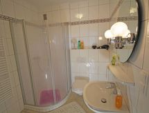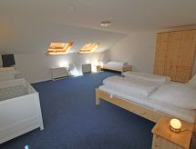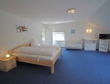 Apt 4 pièces 134 m2 sur 2 niveaux, au rez-de-chaussée. Aménagement moderne et de bon goût: séjour/salle à manger 36 m2 avec TV (satellite) (écran plat), lecteur CD et DVD. Sortie sur la terrasse. 1 chambre 17 m2 avec 1 lit double (180 cm, longueur 200 cm). 1 chambre 13 m2 avec 2 lits (90 cm, longueur 200 cm). Petite cuisine 6 m2 (4 plaques de cuisson, four, lave-vaisselle, grille-pain, bouilloire électrique, four micro-ondes, cafetière électrique). Douche/WC. À l'étage supérieur: 1 chambre 36 m2, mansardée avec 1 lit (90 cm, longueur 200 cm), 1 lit double (180 cm, longueur 200 cm), TV (satellite) (écran plat), DVD. Bain/WC. Terrasse 43 m2. Meubles de terrasse, barbecue. A disposition: lave-linge, fer à repasser, moustiquaire, chaise haute pour enfant, sèche-cheveux, table à langer. Internet (Connexion WIFI, gratuit). Veuillez noter: logement non-fumeur. Maximum 2 animaux/ chiens autorisés. Détecteur de fumée.- Caractéristiques de l'hébergement