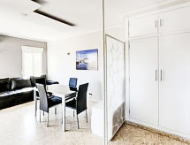 "Residencia El Palmar", apt 2 pièces. Clair, rénové en 2017, aménagement simple et de bon goût: séjour/salle à manger avec 1 divan-lit double, Télévision numérique, écran plat, air-conditionné et chauffage à air chaud. Sortie sur le balcon. 1 chambre avec 2 lits (90 cm, longueur 180 cm). Cuisine ouverte (2 plaques vitrocéramiques, grille-pain, bouilloire électrique, four micro-ondes, cafetière électrique) avec air-conditionné et chauffage à air chaud. Sortie sur le balcon. Douche/WC. A disposition: fer à repasser, chaise haute pour enfant, lit bébé jusqu'à 2 ans. Internet (Connexion WIFI, gratuit). AT-458589-A- Caractéristiques de l'hébergement