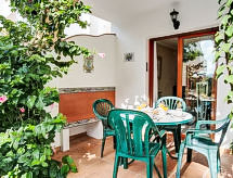 Apt 2 pièces 48 m2, au rez-de-chaussée. Aménagement confortable: séjour/salle à manger avec 1 divan-lit et TV (satellite) (écran plat), air-conditionné. Sortie sur le jardin, sur la piscine. 1 chambre double. Cuisine ouverte (four micro-ondes). Douche/WC. Pas de chauffage. Terrasse. Chaises longues (2). A disposition: lave-linge, coffre-fort. Place de parking (cloturée). AT-423967-A- Installations