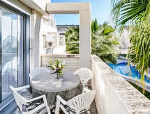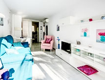 Grande petite résidence "Elegance", de 4 étages, année de construction 2006. En bordure de la localité, à 700 m du centre de Dénia, à 500 m de la mer. En commun: jardin avec pelouse, piscine (disponibilité saisonnière: 01.Jan. - 31.Dec.). Bassin pour les enfants. Infrastructures de la résidence: sauna, salle fitness, salle de jeux, ascenseur (en commun). Sentier en escalier (15 marches) jusqu'à la maison. Place de parking. Magasins 1 km, supermarché 1 km, bar, arrêt du bus 400 m, plage de sable 500 m. Port plaisance 2 km, terrain de golf (18 trous) 8 km, tennis 500 m. Le propriétaire n'accepte pas les groupes de jeunes.Interior