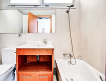 "Élegance", apt 3 pièces 60 m2 au 1er étage. Séjour/salle à manger avec TV (satellite), Télévision numérique, air-conditionné et chauffage à air chaud. Sortie sur la terrasse. 1 chambre avec 1 grand-lit (150 cm, longueur 200 cm). 1 chambre avec 2 lits (90 cm, longueur 190 cm), bain/bidet/WC, air-conditionné et chauffage à air chaud. Sortie sur la terrasse. Cuisine (four, lave-vaisselle, four micro-ondes, congélateur). Bain/WC. Vue sur la piscine. A disposition: lave-linge, chaise haute pour enfant, lit bébé. Place de parking No 255 (couvert). 1 animal/ chien autorisé. Connexion Internet dans la résidence. AT-458535-A- Installations