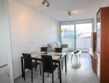 "Elegance", apt 2 pièces 51 m2. Logement idéal pour 2 adultes + 2 enfants. Clair, aménagement fonctionnel et confortable: séjour/salle à manger 20 m2 avec Télévision numérique et air-conditionné. Sortie sur la terrasse. 1 chambre 10 m2 avec 1 grand-lit (135 cm, longueur 190 cm). Coin cuisine (four, 4 plaques vitrocéramiques, grille-pain, bouilloire électrique, four micro-ondes, congélateur, cafetière électrique). Bain/bidet/WC. Air-conditionné. Terrasse 12 m2. Meubles de terrasse. Vue sur la piscine. A disposition: lave-linge, fer à repasser, sèche-cheveux. Place de parking No 183(-2) (couvert). AT-476739-A- Installations