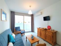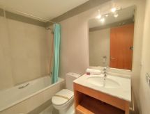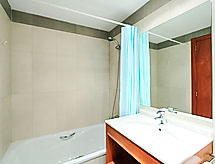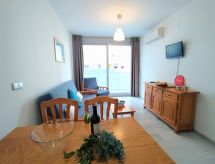 "Elegance", apt 2 pièces 51 m2 au 5ème étage, situation est. Spacieux et clair, aménagement fonctionnel: séjour/salle à manger 19 m2 avec 1 divan-lit double, Télévision numérique, air-conditionné et chauffage à air chaud. Sortie sur la terrasse. 1 chambre 10 m2 avec 2 lits (80 cm, longueur 190 cm). Cuisine ouverte (four, 4 plaques vitrocéramiques, grille-pain, bouilloire électrique, four micro-ondes, congélateur, cafetière électrique). Bain/WC. Chauffe eau (50 litres). Terrasse 10 m2. Meubles de terrasse. Vue sur la piscine. A disposition: lave-linge, fer à repasser, sèche-cheveux. Garage No 255. 1 animal/ chien autorisé. AT-428539-A- Installations