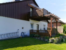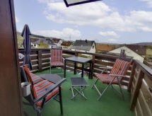 "Elena", apt 2 pièces 58 m2 au 1er étage. Partiellement mansardé, aménagement plaisant: séjour/salle à manger 24 m2 avec 1 divan-lit double (140 cm, longueur 200 cm), 1 grand-lit (140 cm, longueur 200 cm), TV (satellite) (écran plat). 1 chambre 18 m2 avec 1 lit double (200 cm, longueur 200 cm). Coin cuisine (four, lave-vaisselle, 4 plaques vitrocéramiques, four micro-ondes, cafetière électrique). Douche/WC. Chauffage électrique. Petit balcon 8 m2. Mobilier de balcon, barbecue électrique. Belle vue sur les montagnes et la localité. A disposition: lave-linge, sèche-linge, sauna (en sus), chaise haute pour enfant, lit bébé. Internet (Connexion WIFI, gratuit). Veuillez noter: logement non-fumeur. Vous pouvez profiter du sauna pour le prix de 15€ par utilisation (à payer sur place) des serviettes sont comprises dans le tarif. Le logement dispose d'un balcon partiellement couvert.- Installations