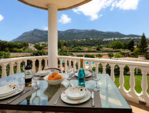 Grande villa accueillante, confortable "Elies", de 2 étages. Dans la localité, à 2.3 km du centre de Dénia, situation isolée, tranquille, ensoleillée, à 2.7 km de la mer, à 3.3 km de la plage. A usage privé: terrain avec pelouse et plantes, piscine rectangulaire (12 x 6 m, profondeur 80 - 210 cm, disponibilité saisonnière: 01.Jan. - 31.Dec.) avec marches intérieures. Douche extérieure, meubles de jardin, espace barbecue, espace de jeux pour les enfants (toboggan, balançoire), place de parking sur le terrain. Supermarché 1.6 km, centre commercial 1.6 km, restaurant 900 m, bar 1 km, plage de sable "Marineta Cassiana" 3.3 km. Port plaisance 3 km, marina 3 km, terrain de golf 7 km, ecole de surf 3 km, ecole de voile 3 km. Le propriétaire n'accepte pas les groupes de jeunes.Interior