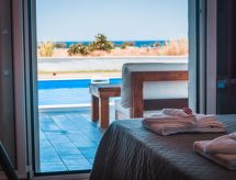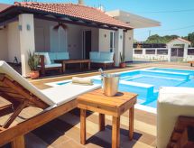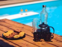 "Elysian", villa 3 pièces 85 m2. Spacieux et clair, aménagement confortable et agréable: séjour/chambre à coucher ouvert avec 2 divans-lits, cheminée, table pour les repas et TV (satellite) (écran plat). Sortie sur le jardin, sur la piscine. 2 chambres doubles, chaque chambre avec: 1 lit double. Sortie sur le jardin. Cuisine ouverte (four, 4 plaques vitrocéramiques, four micro-ondes, cafetière électrique). Bain/WC. Air-conditionné. Grande terrasse partiellement couverte. Barbecue. Belle vue sur les alentours. A disposition: lave-linge, coffre-fort, fer à repasser, sèche-cheveux. Internet (Connexion WIFI, gratuit). 00001146459- Installations