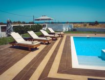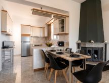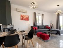 Belle villa confortable, individuelle "Elysian", environnée par les champs. Dans le quartier d'Afandou, situation tranquille, ensoleillée, à 300 m de la mer, à 300 m de la plage. A usage privé: beau jardin entretenu avec fleurs et arbres, pré, piscine rectangulaire (49 m2, profondeur 70 - 150 cm, disponibilité saisonnière: 01.Avr. - 30.Nov.) avec marches intérieures. Place de parking près de la maison. Magasin d'alimentation 2 km, supermarché 2 km, restaurant 2 km, bar 2 km, boulangerie 2 km, café 2 km, plage de sable "Afandou" 300 m. Terrain de golf (18 trous) 1.5 km, centre équestre 8.4 km. Attractions à proximité: Valley of the Butterflies 19.4 km, Bee Museum of Rhodes 14.3 km, Lindos Acropolis 31 km, Asklipio Castle 43.7 km, Palace of the Grand Master of Knights 21.3 km, Waterpark Rhodes 10.7 km. Veuillez noter: voiture recommandée. Adapté(e) aux familles, équipement pour bébés sur demande (inclus). Groupes de jeunes sur demande seulement.Interior