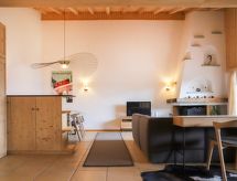 "Ermitage 11", apt 4 pièces 90 m2 au 2ème étage, situation sud. Mansardé, complètement rénové en 2021, aménagement confortable et agréable: grand séjour/salle à manger mansardé avec cheminée, table pour les repas et TV (écran plat). Sortie sur le balcon, orientée sud. 1 chambre double mansardée avec 1 grand-lit (180 cm, longueur 200 cm), douche/WC. 2 chambres, chaque chambre avec: 1 x 2 lits superposés (90 cm). Cuisine ouverte (four, lave-vaisselle, 4 plaques vitrocéramiques, grille-pain, bouilloire électrique, four micro-ondes, congélateur, appareil à raclette, service à fondue (fondue au fromage)). Douche, WC séparé. Balcon, situation sud. Mobilier de balcon, chaises longues (2). Très belle vue panoramique sur les montagnes. A disposition: Internet (Connexion WIFI, gratuit). Garage No 4. Veuillez noter: logement non-fumeur.- Installations