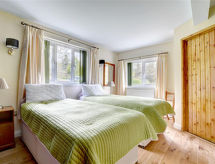 3 pièces cottage sur 2 niveaux. Aménagement confortable et de bon goût: séjour/salle à manger avec baie vitrée avec TV (écran plat), DVD et poêle à bois. Sortie sur le jardin, sur le jardinet. 1 chambre avec 2 lits et douche/WC. Cuisine (4 plaques de cuisson, four, four micro-ondes, congélateur). À l'étage supérieur: 1 chambre avec 1 lit double. Bain/douche/WC. Chauffage. Jardinet, jardin. Meubles de terrasse. Vue panoramique sur les alentours. A disposition: lave-linge, chaise haute pour enfant, lit bébé jusqu'à 2 ans. Internet (Connexion WIFI, gratuit). Place de parking. Veuillez noter: maison non-fumeur. Maximum 1 animal/ chien autorisé. TV seulement EN.- Installations