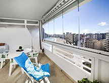 "Esmeralda 02", apt 2 pièces 55 m2 au 12ème étage. Clair, aménagement de bon goût et de style: séjour/salle à manger avec 1 divan-lit double, TV (satellite), Télévision numérique, écran plat, air-conditionné et chauffage à air chaud. Sortie sur la terrasse. 1 chambre double avec 1 lit double (135 cm, longueur 190 cm). Cuisine ouverte (four, 4 plaques vitrocéramiques, cafetière électrique, combiné micro-ondes). Bain/WC. Chauffe eau (75 litres). Meubles de terrasse, chaises longues (2). Vue panoramique sur la mer. A disposition: lave-linge. Internet (Connexion WIFI, gratuit). Place de parking (en sus). Adapté(e) aux familles. AT-440467-A- Installations