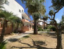 Apt 2 pièces 35 m2. Aménagement simple et fonctionnel: séjour/salle à manger avec 2 lits. 1 chambre double. Coin cuisine (4 plaques de cuisson, mini-four, congélateur). Douche/bidet/WC. Pas de chauffage. Petit balcon ou petite terrasse couverte. Place de parking No 1. 1 animal/ chien de petite taille autorisé.- Installations