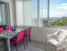 Résidence "Estany", de 5 étages. Dans le quartier de la Grande Plage, à 100 m de la mer, à 100 m de la plage. Magasins 1 km, supermarché 5 m, restaurant 1 km, boulangerie 1 km, café 500 m, arrêt du bus 700 m, gare ferroviaire "La Franqui" 20 km, centre de plongée 5 km, piscine 7 km, plage naturiste 10 km. Ecole de voile 3 km, tennis 3 km, golf miniature 3 km, centre équestre 600 m, piste cyclable 6 km. Attractions à proximité: Aqualand Port Leucate 7 km, Réserve Africaine de Sigean 41 km, Fort de Salses 20 km, Narbonne 55 km, Perpignan 25 km, Barcelone 215 km. Les lacs connus sont facilement accessibles: Etang de Leucate ou Salses 7 km, Lac de Villeneuve de La Raho 28 km. Région de randonnées: Sentier du guetteur 8 km, Station meteorologique d'Opoul Perillos 25 km, Sentier du littoral Collioure 40 km. Veuillez noter: night-club/discothèque à proximité. Aéroport 20 km de la maison.Interior