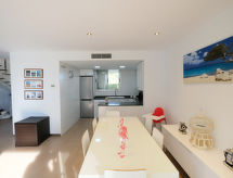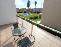 Maison mitoyenne moderne, accueillante, confortable "Estrella", de 2 étages, année de construction 2011. Quartier résidentiel, à 110 m de la mer, à 100 m de la plage. En commun: parc (clôturé), grand jardin (clôturé), piscine (20 x 8 m, disponibilité saisonnière: 01.Jun. - 30.Oct.). Douche extérieure, jardinet. A usage privé: petit, beau jardin. Jardinet, meubles de jardin. Infrastructures de la Maison: accès internet, Connexion WIFI, air-conditionné, lave-linge. Place de parking (pour 2 voitures) près de la maison. Magasin d'alimentation 1.5 km, restaurant 800 m. Port plaisance 2 km, terrain de golf (18 trous) 5 km, ecole de surf 20 km. Attractions à proximité: Port Aventura 60 km, Parque natural Delta del Ebro 20 km. Veuillez noter: voiture recommandée.Interior