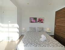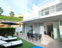 "ESTRELLA", maison mitoyenne 4 pièces 115 m2 sur 2 niveaux. Spacieux et clair, aménagement confortable et moderne: séjour/salle à manger avec table pour les repas, bar, bain/douche/WC, TV (satellite), chaînes de TV internationales, écran plat, DVD, radiateur électrique et air-conditionné. Sortie sur le jardinet. Grande cuisine ouverte (four, lave-vaisselle, 4 plaques vitrocéramiques, four micro-ondes, congélateur, cafetière électrique). À l'étage supérieur: 1 chambre double avec 1 grand-lit (1 x 190 cm, longueur 150 cm). 1 chambre double avec 1 grand-lit (1 x 190 cm, longueur 150 cm). 1 chambre avec 2 lits (190 cm, longueur 90 cm). Bains ou douche/WC. Grand balcon. Mobilier de balcon, barbecue. Belle vue. A disposition: Internet (Connexion WIFI, gratuit). Place de parking (2 Voitures). Adapté(e) aux familles. Maximum 2 animaux/ chiens autorisés. HUTTE047001- Caractéristiques de l'hébergement