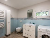 "Etoile de Mer", chalet 2 pièces 40 m2. Complètement rénové en 2021, aménagement moderne: séjour/salle à manger avec 1 divan-lit double (140 cm, longueur 190 cm), table pour les repas. Sortie sur la terrasse. 1 chambre avec 1 lit (160 cm, longueur 190 cm). Sortie sur la terrasse. Cuisine ouverte (4 plaques de cuisson, four, lave-vaisselle, 2 plaques vitrocéramiques, bouilloire électrique, cafetière électrique, Capsules pour machine à café (Senseo) (NON INCLUSES)). Douche/WC. Chauffage par le sol. Terrasse 10 m2, grand jardin. Meubles de terrasse, barbecue électrique (portable), chaises longues (2). Vue partielle sur le lac. A disposition: lave-linge, chaise haute pour enfant, lit bébé, sèche-cheveux. Internet (Connexion WIFI, gratuit). Place de parking (1 Voiture). Veuillez noter: détecteur de fumée, extincteur. Annonce d'un particulier (art 155, IV du CGI).- Installations