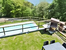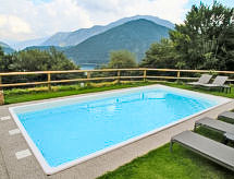 Immeuble "Europa", de 2 étages, environné par les arbres. 4 appartements dans la résidence. À 1 km du centre de Pieve di Ledro, situation tranquille sur une colline, à 800 m du lac. En commun: piscine (8 x 4 m, disponibilité saisonnière: 01.Mai. - 30.Sep.). Douche extérieure. Accès en voiture jusqu'à la maison. Place de parking sur le terrain. Magasin d'alimentation 1 km, restaurant 1 km, plage de gazon 1 km. Veuillez noter: voiture recommandée. La photo ne montre qu’un exemple de location de vacances.Interior