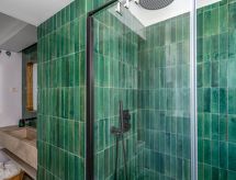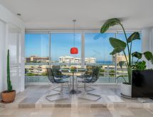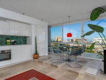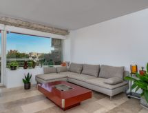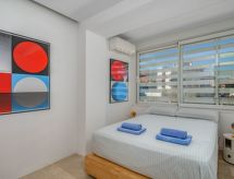 Apt 3 pièces 97 m2 au 2ème étage. Logement idéal pour 2 adultes + 2 enfants. Aménagement confortable et moderne: séjour/salle à manger avec TV et Télévision numérique (écran plat), air-conditionné et chauffage à air chaud. Sortie sur la terrasse. 1 chambre double avec 1 grand-lit (150 cm, longueur 190 cm). 1 chambre double avec 1 grand-lit (135 cm, longueur 190 cm). Cuisine ouverte (2 plaques à induction, grille-pain, bouilloire électrique, congélateur, cafetière électrique, combiné micro-ondes). Douche/WC. Terrasse 10 m2. Meubles de terrasse. Très belle vue sur la mer. A disposition: lave-linge, fer à repasser, sèche-cheveux. Internet (Connexion WIFI). VFT/MA/33387- Installations