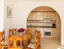 El Casalot: Petite résidence confortable "Residencial Eurosol de los Monteros". En bordure de la localité, à 3 km du centre de Miami, situation ensoleillée, à 3.5 km de la mer, à 3.5 km de la plage. En commun: terrain (clôturé), piscine (12 x 5 m, profondeur 80 - 190 cm, disponibilité saisonnière: 01.Avr. - 30.Oct. horaires d'ouverture de la piscine: 10:00-21:00) avec marches intérieures. Douche extérieure, entretien de la piscine par le propriétaire/jardinier, place de parking près de la maison, parking public possible dans la rue. Supermarché 3 km, centre commercial 3 km, restaurant 3 km, bar 1 km, gare ferroviaire "Hospitalet" 5 km, plage de sable 3.5 km. Attractions à proximité: Parque Portaventura 28 km, parque acuático Aquopolis 31 km, parque Natural del Delta del Ebro 53 km, Tarragona 37 km, Reus 30 km, Barcelona 132 km. Veuillez noter: voiture recommandée. Groupes de jeunes sur demande seulement. D’autres appartements sont également proposés à la location dans cette maison de vacances. La propriété référencée ES9587.816.2 est située sur le même terrain.Interior
